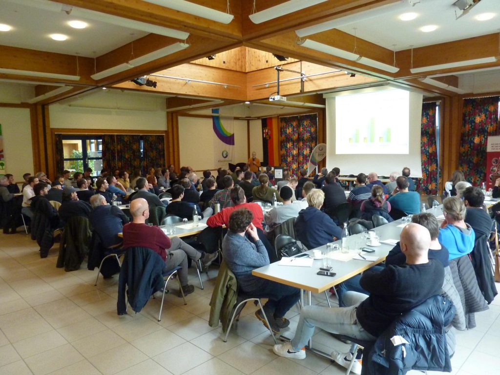 Namhafte Fachreferenten*innen aus Rheinland-Pfalz und Hessen gaben den rund 100 Teilnehmern*innen einen Überblick zu den neuen Entwicklungen, Ergebnissen und rechtlichen Regelungen bzgl. des Nutzens, der Qualitätssicherung und der Anwendung der Komposte im ökologischen Pflanzenbau. Das große und noch wachsende Interesse am Thema wurde dabei nicht nur durch die hohe Zahl der Teilnehmenden dokumentiert. Vielmehr musste leider ein erheblicher Teil an Personen, die sich angemeldet hatten, aufgrund der begrenzten Räumlichkeiten auf die nächste Veranstaltung vertröstet werden.