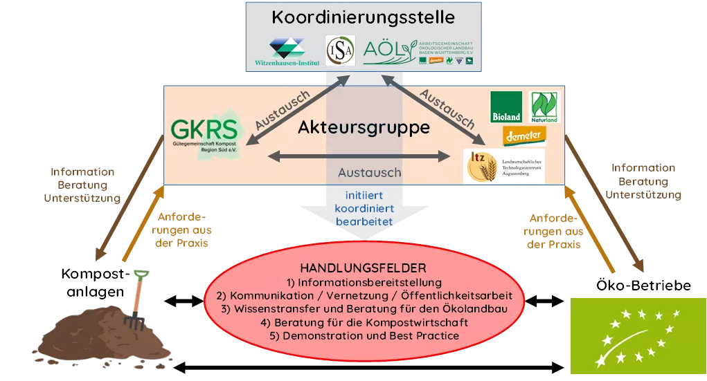 Es dient der nachhaltigen Vernetzung der Akteure für die Erzeugung und Anwendung gütegesicherter Biogut- und Grüngutkomposte im Ökolandbau in Baden-Württemberg auf allen Ebenen: